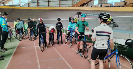Le 19 février dernier, une dizaine de jeunes et leurs encadrants des écoles françaises de vélo se sont retrouvés au stade vélodrome de Bordeaux pour une découverte de la piste. Ils ont troqués leurs gros pneus VTT pour les pneus tout fins et lisses. Ils ont laissés la boue de côté pour rouler sur la côte d'azur. Ils sont sortis des ornières pour monter sur le plancher en bois. "Ils", ce sont 9 jeunes des écoles de vélo de la Gironde Après avoir écouté attentivement Lucas, qui leur a donné les consignes de sécurité, les jeunes sont montés dans l'anneau, et un par un, au top départ, se sont éléncés sur la piste. Les premiers tours sont tranquiles, puis les jeunes prennent de plus en plus de vitesse, se doublent, et se redoublent... Une petite pause, et l'heure du contre la montre arrive. Un tour de piste en restant en bas sur la côte d'azur, départ arrêté. Pas de record battu, mais à voir les visages ravis des jeunes, peu importe. Un gouter clôtura ce bapteme de piste et cet après-midi ludique et conviviale.